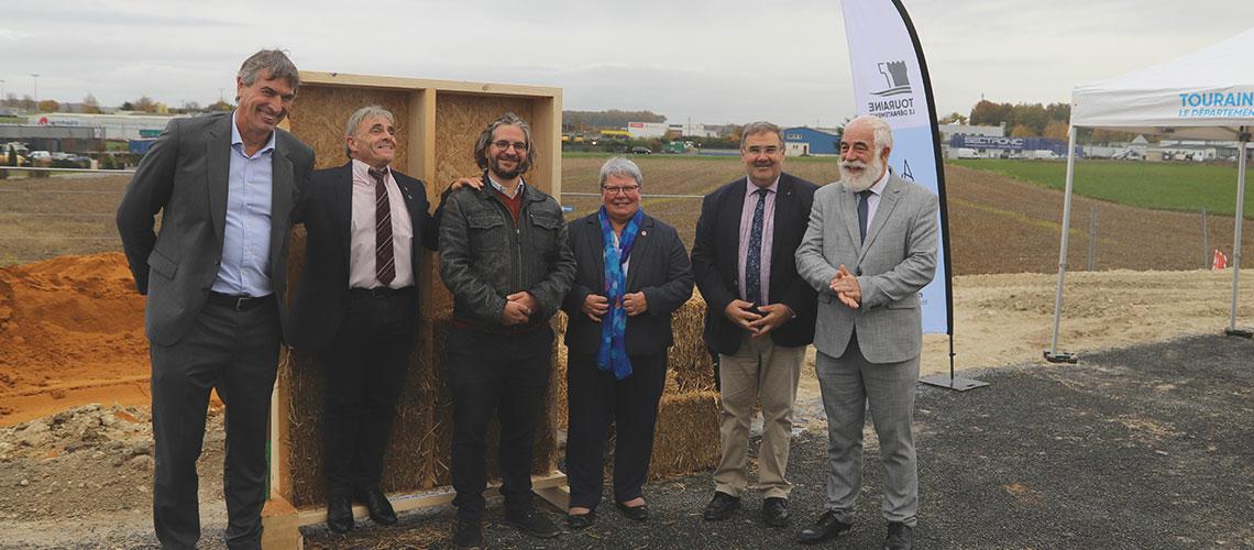 Le 6 novembre dernier, élus, partenaires et équipes se sont réunis pour marquer le lancement du chantier à travers un geste inaugural original : l’insertion d’une botte de paille dans un module bois, accompagnée d’un tube de cuivre contenant un parchemin, symbole de la construction durable et de la transmission.